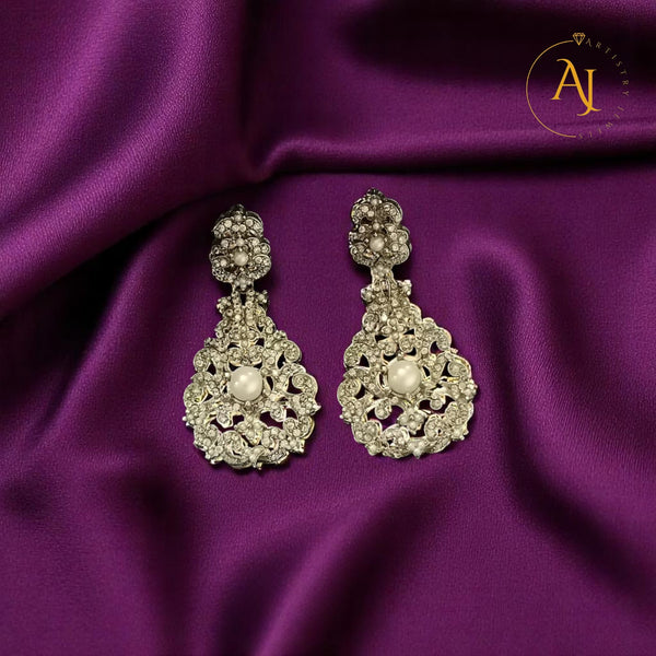 Silver Zirconia Earrings – Elegant Sparkle with Real Pearl