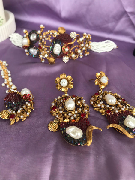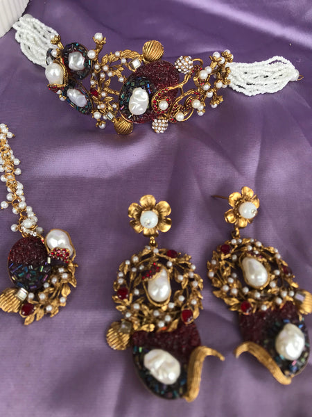 Handcrafted with intricate detail, this choker set wraps the neck like a crown — luminous, meaningful, and unforgettable.