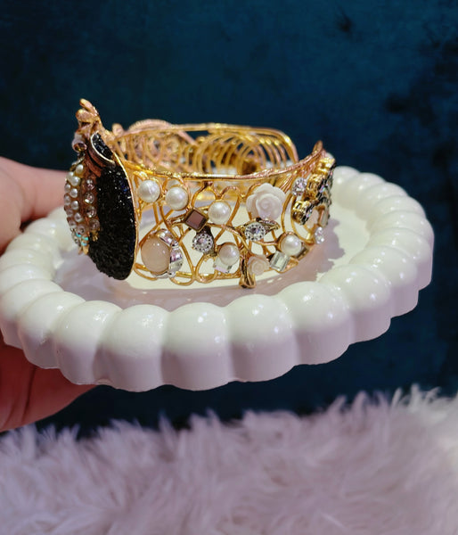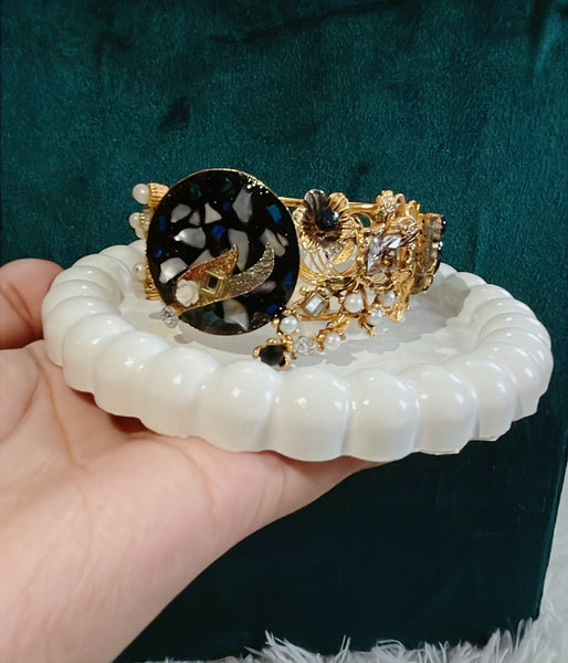 Radiating the quiet luxury of gold and the dazzling brilliance of zircon, Amour Gleam is more than just a bangle—it's a statement of timeless affection. Crafted with a lustrous golden finish, this exquisite piece wraps delicately around your wrist, adorned with meticulously set high-grade zircon stones that shimmer with every movement.