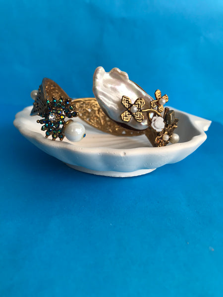 The Azure Glow hand cuff captures the spirit of ancient Egypt with a contemporary twist. Designed around a soft, iridescent mother-of-pearl inlay, it reflects light with a natural shimmer that feels both calming and luxurious. A refined royal blue detail adds a striking contrast—echoing the deep hues of the Nile and the rich pigments worn by queens and deities of old.