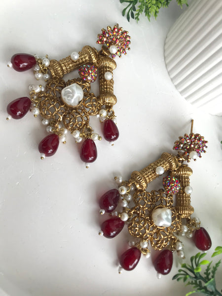 Inspired by the rich beauty of Egyptian deserts and timeless royal adornments, Desert Pearl earrings blend fiery passion with soft sophistication. A striking red hue, symbolic of strength and vitality, is paired with the delicate shimmer of mother-of-pearl, creating a captivating contrast of bold and ethereal.
