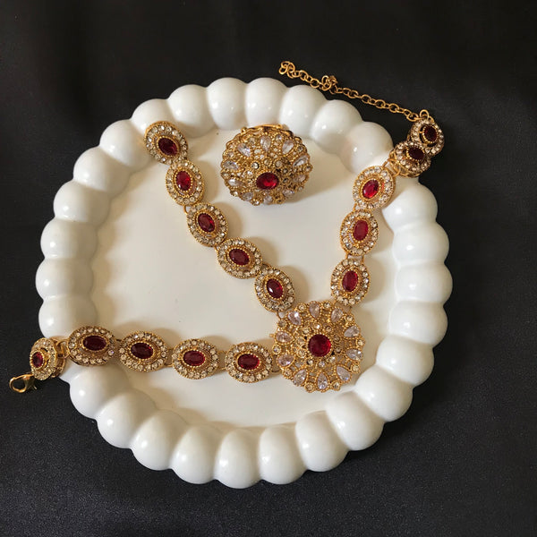 Shimmering zircon stones emulate the brilliance of diamonds, adding refined glamour without the use of precious gems or ratn.
