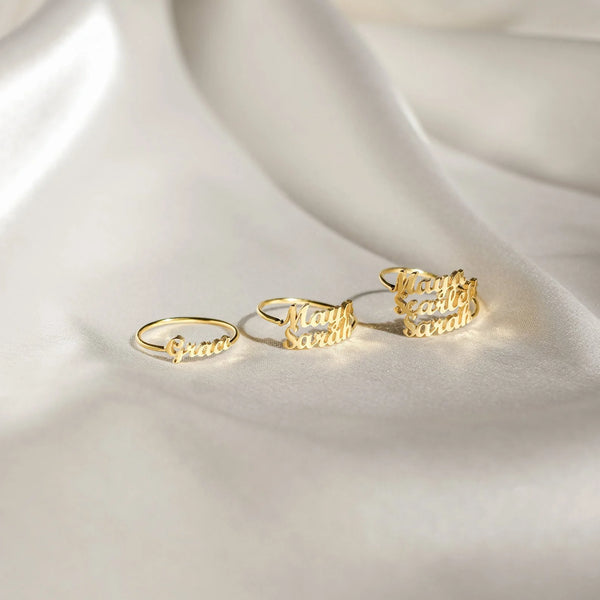 Make a bold statement with our custom Personalized Ring, beautifully crafted to reflect your unique style. Choose between gold-plated or silver rhodium-plated finishes—both tarnish-free for lasting shine and durability.