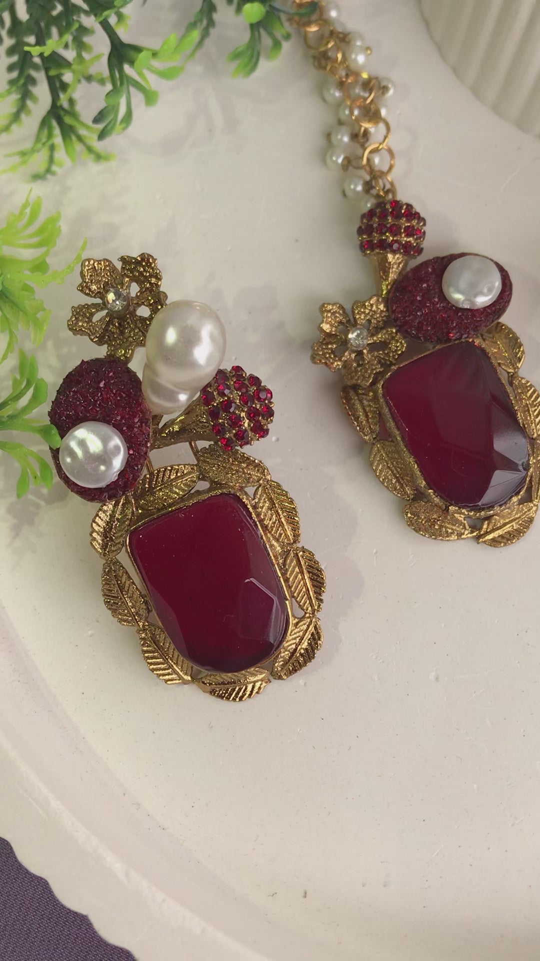 Step into a world of timeless royalty with Crown Pearl — a majestic set of Egyptian-inspired earrings paired with a matching tikka, designed for those who carry grace like a crown. Embellished with the soft shimmer of mother-of-pearl and accented by a bold touch of red, this set captures the power, beauty, and mystique of ancient queens.