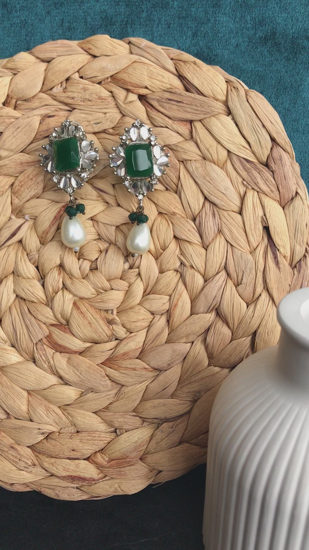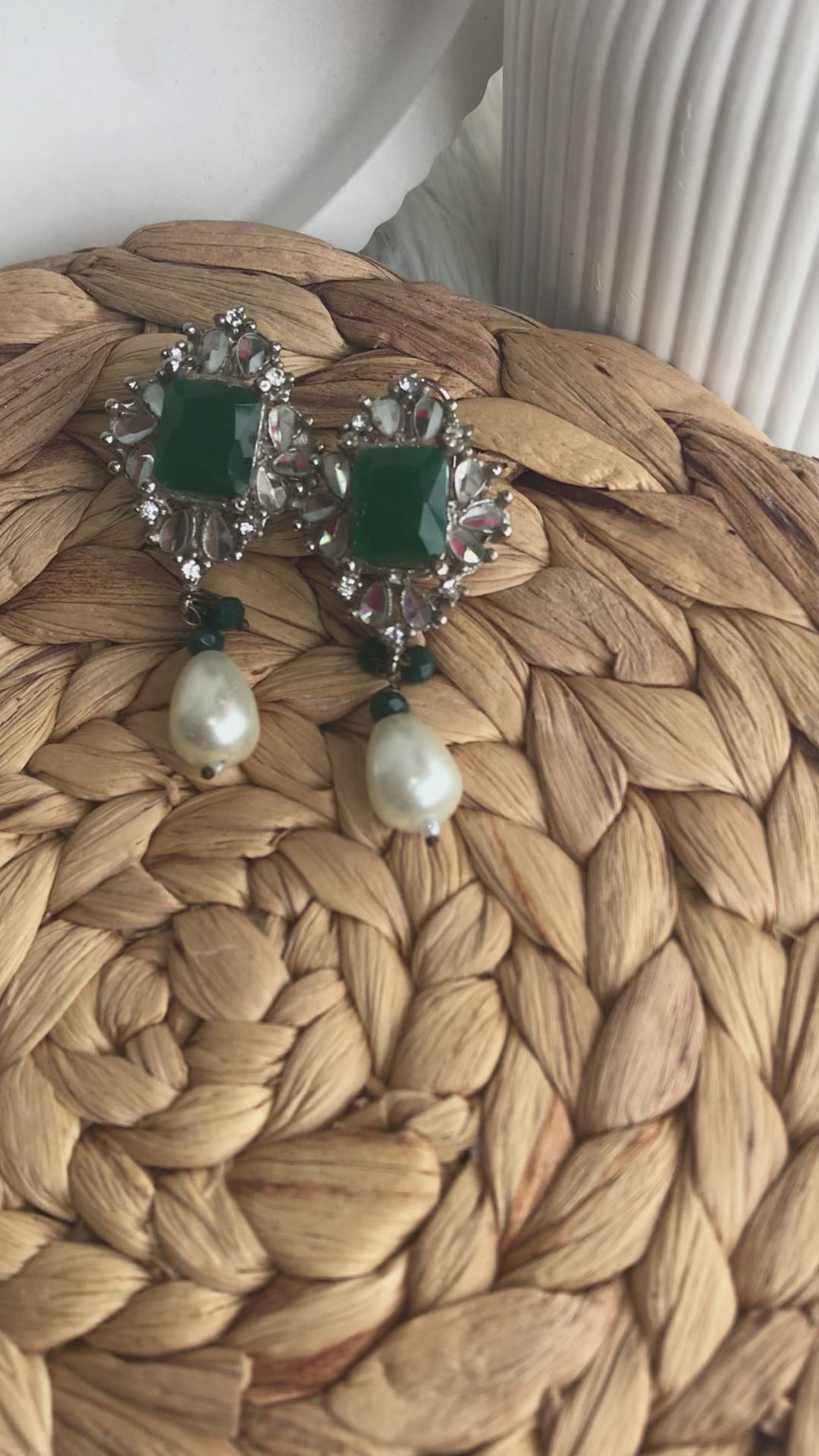 Gleam Studs – Full Zircon Sparkle in Emerald Green & Yellow