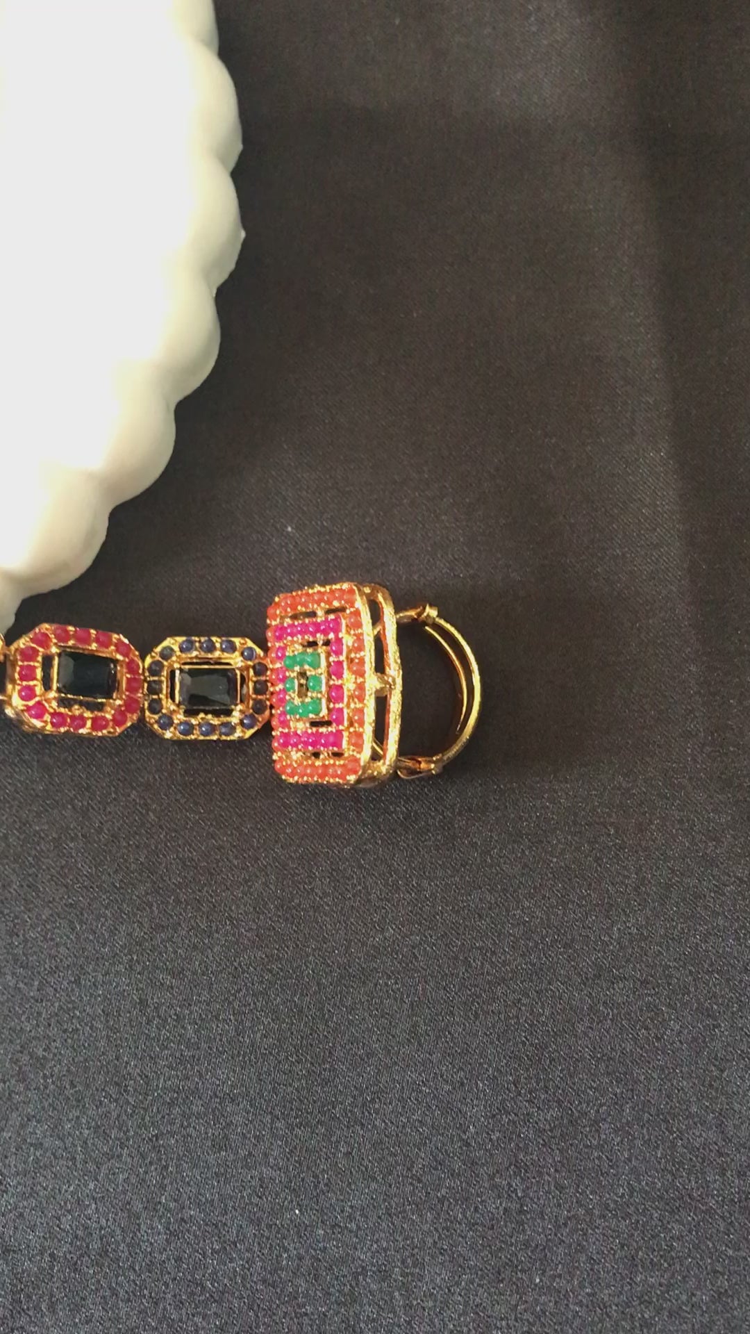 Connects the bracelet to a delicately crafted ring, creating a graceful flow across the hand. -