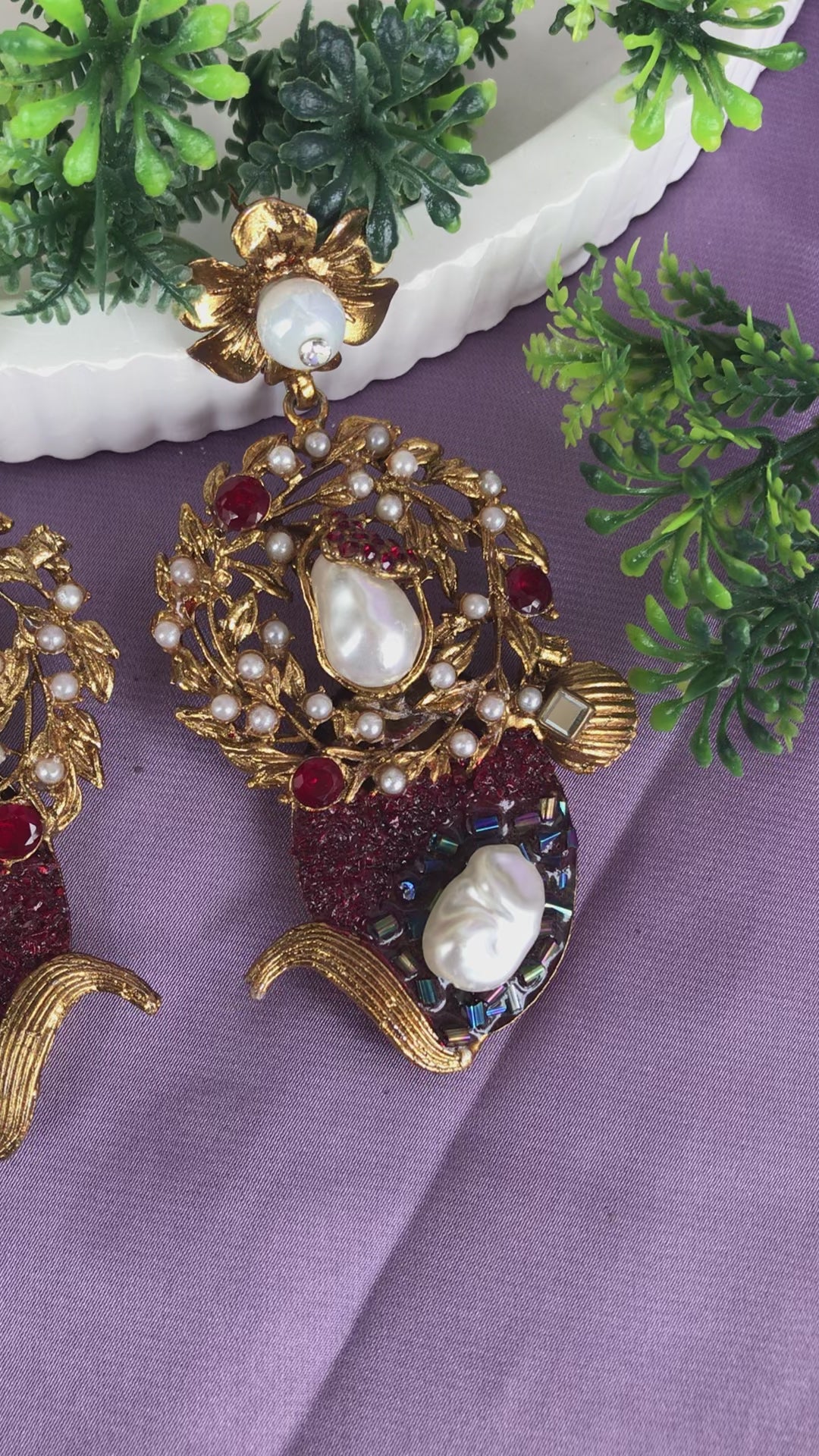 Illuminate your style with Luna Pearl, a striking pair of Egyptian-inspired earrings that blend the celestial elegance of Mother of Pearl with the deep, symbolic tones of royal red and midnight blue.